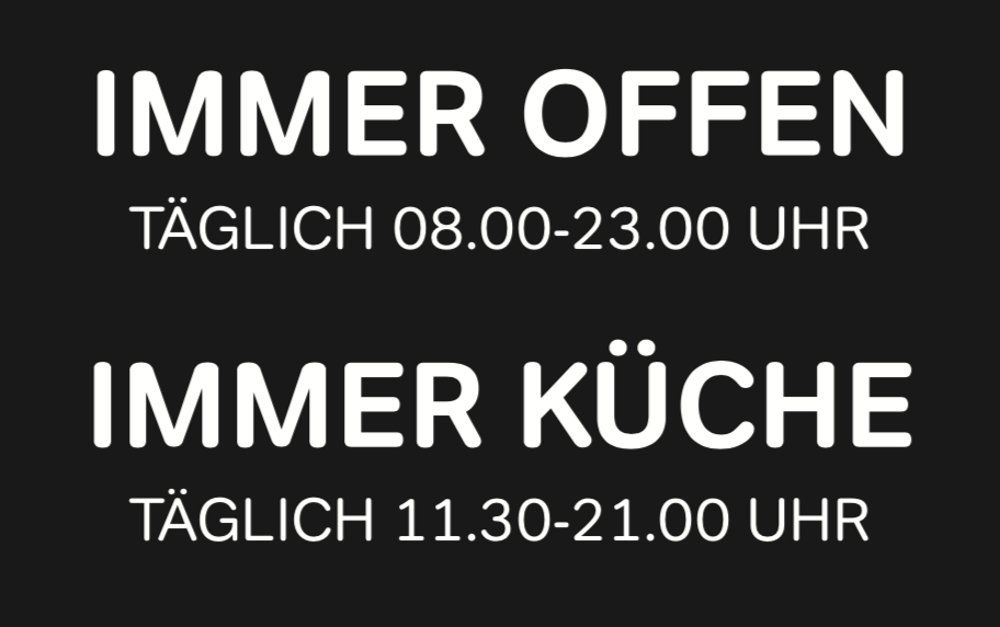 WARME KÜCHE: täglich durchgehend 11:30 - 21:00 Uhr (13:30 - 18:00 Uhr mit kleiner Karte)