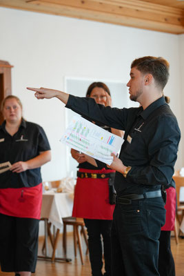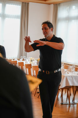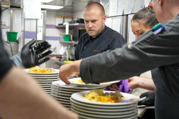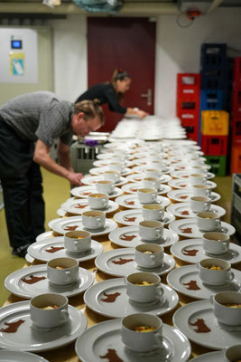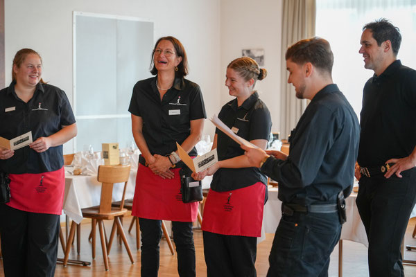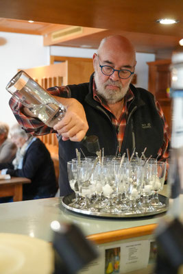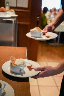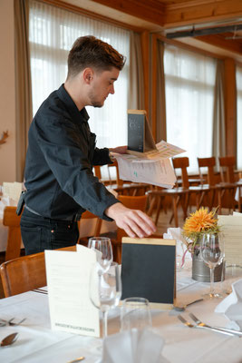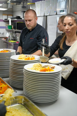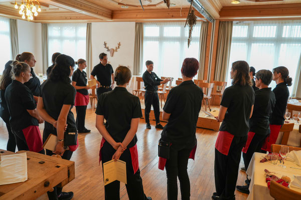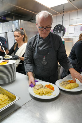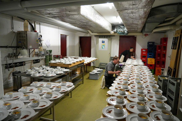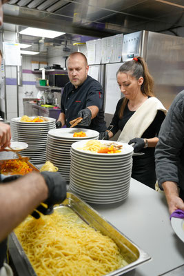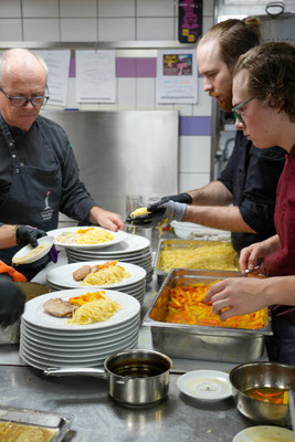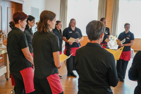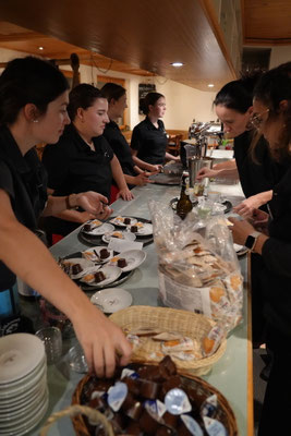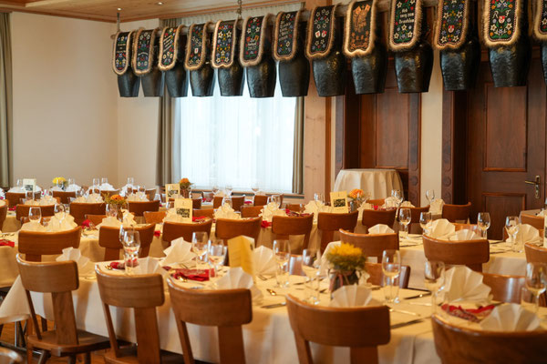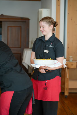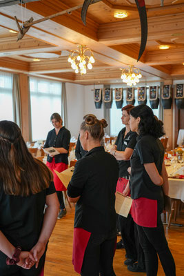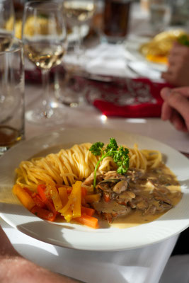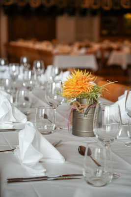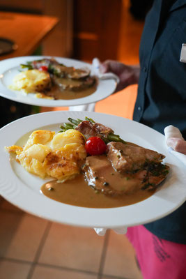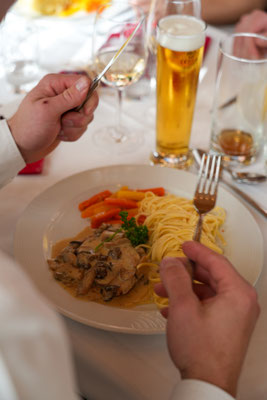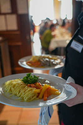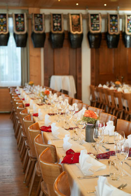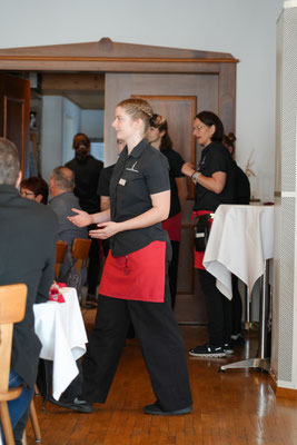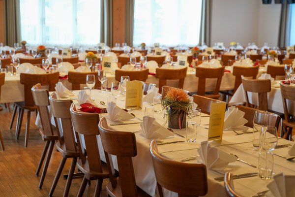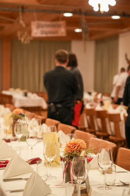 Info: im Saal hat es am Abend für das Bankett nur noch einzelne Plätze; Reservationen oder für Tische im Restaurant -