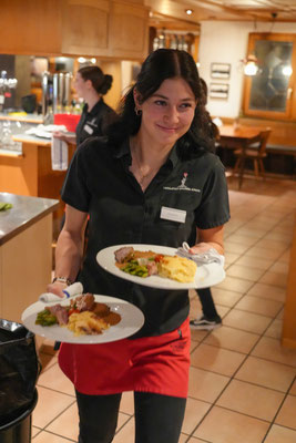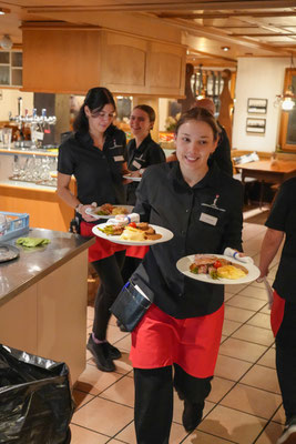 Gerne verwöhnen wir Sie in der Dorfbeiz mit urchigen Speisen am Mittag ab 11.30 Uhr und am Abend ab 18.00 Uhr.